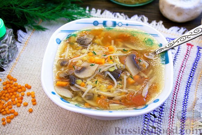 Густой грибной суп с вермишелью